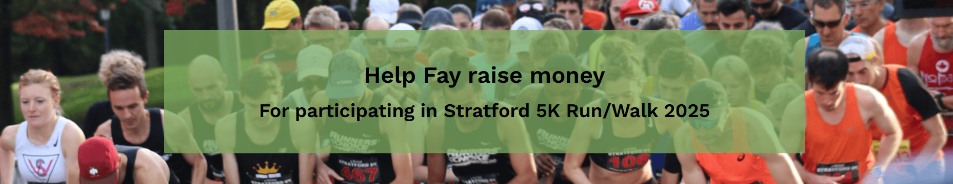 Fay will be running in the 4th Annual Stratford 5K Run/Walk